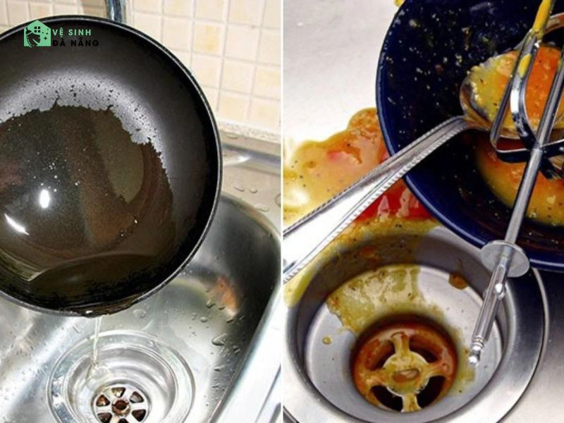 - Dầu mỡ tích tụ lâu ngày: Sau khi rửa chén, dầu mỡ bám vào thành ống và đông lại, gây tắc nghẽn.